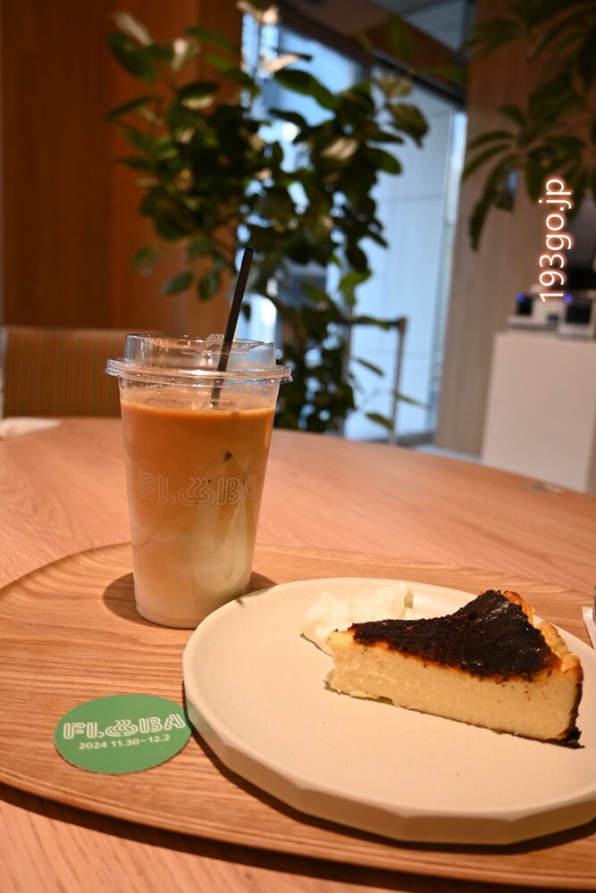 チーズケーキはギュッと濃密でしっとり、甘さ控えめ。クリーム添え。