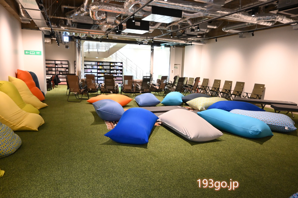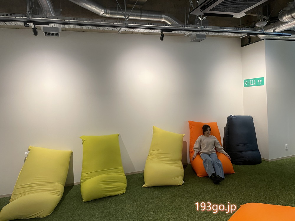 ラウンジに漫画一万冊以上!ヨギボーで寝ころぶ、リラックス空間