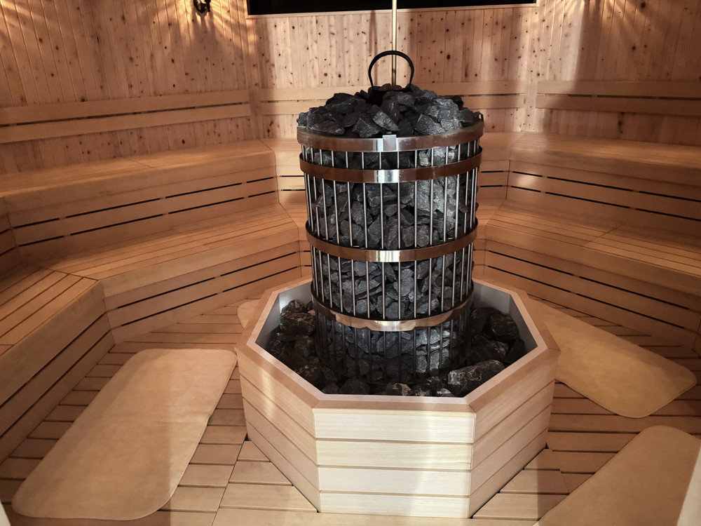 ちなみに、男性サウナ室(3階)は八角形型で収容人数約30名。