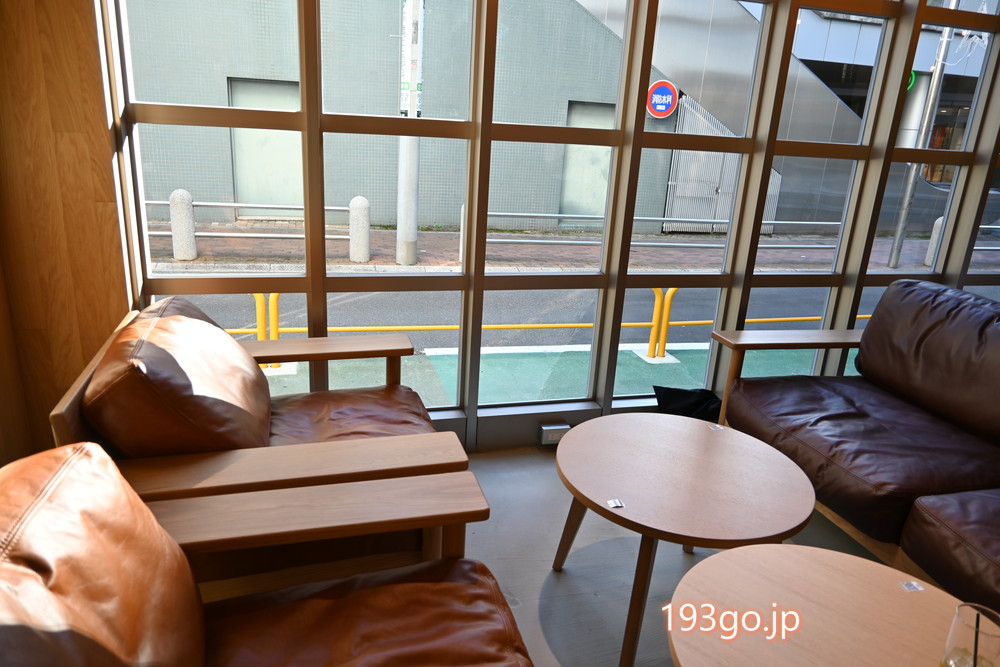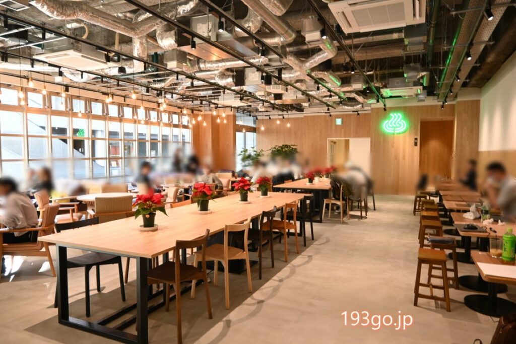 カフェは7時から23時まで営業。入浴関係なしに利用できる。席数は約80席、コンセント完備。