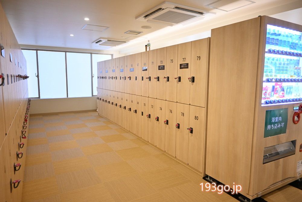 鍵付きロッカー、パウダールームには洗面台、大きめミラー、POLAのスキンケア用品やSALONIA(サロニア)ドライヤー・ヘアアイロンなどが完備。