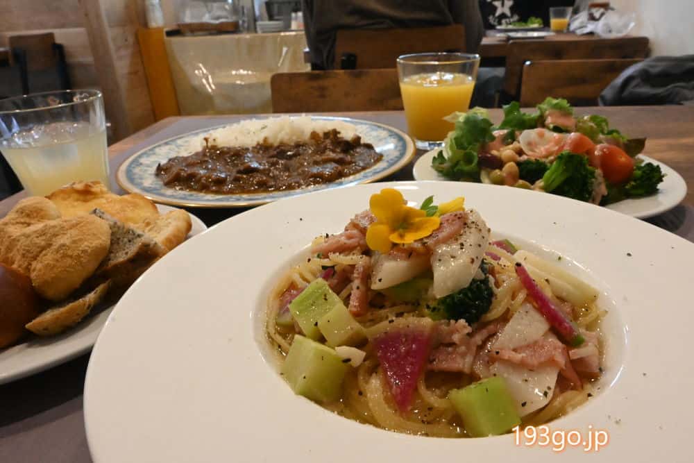 欧風カレーと、パスタは根野菜ベーコンオイルをチョイス。