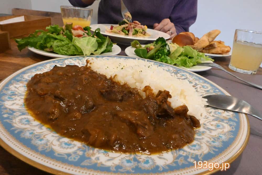 欧風カレーは、柔らかいビーフがゴロゴロ。ルーは野菜を煮込んだ甘みたっぷり。