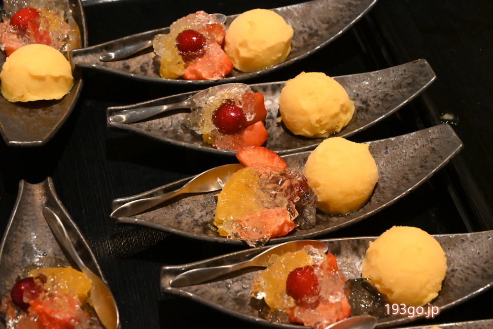 季節の果物とジュレ掛けアイス