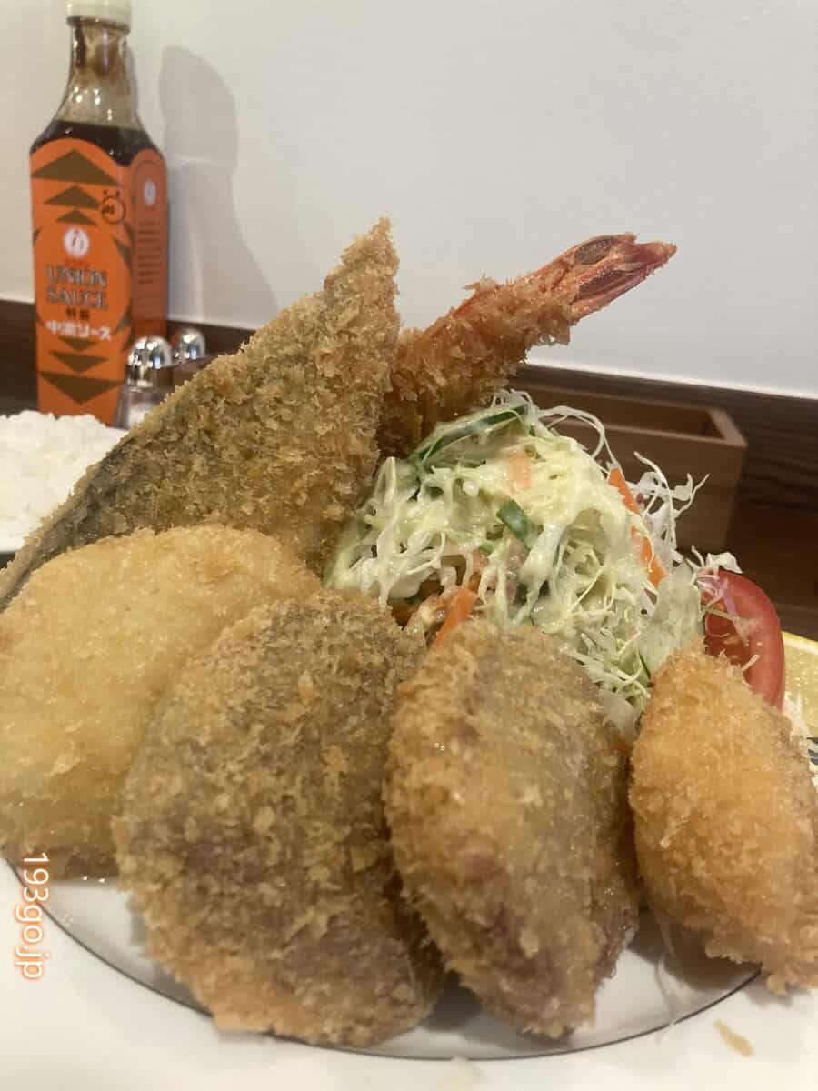 スペシャルミックスフライ!大ぶりフライを次々頬張る