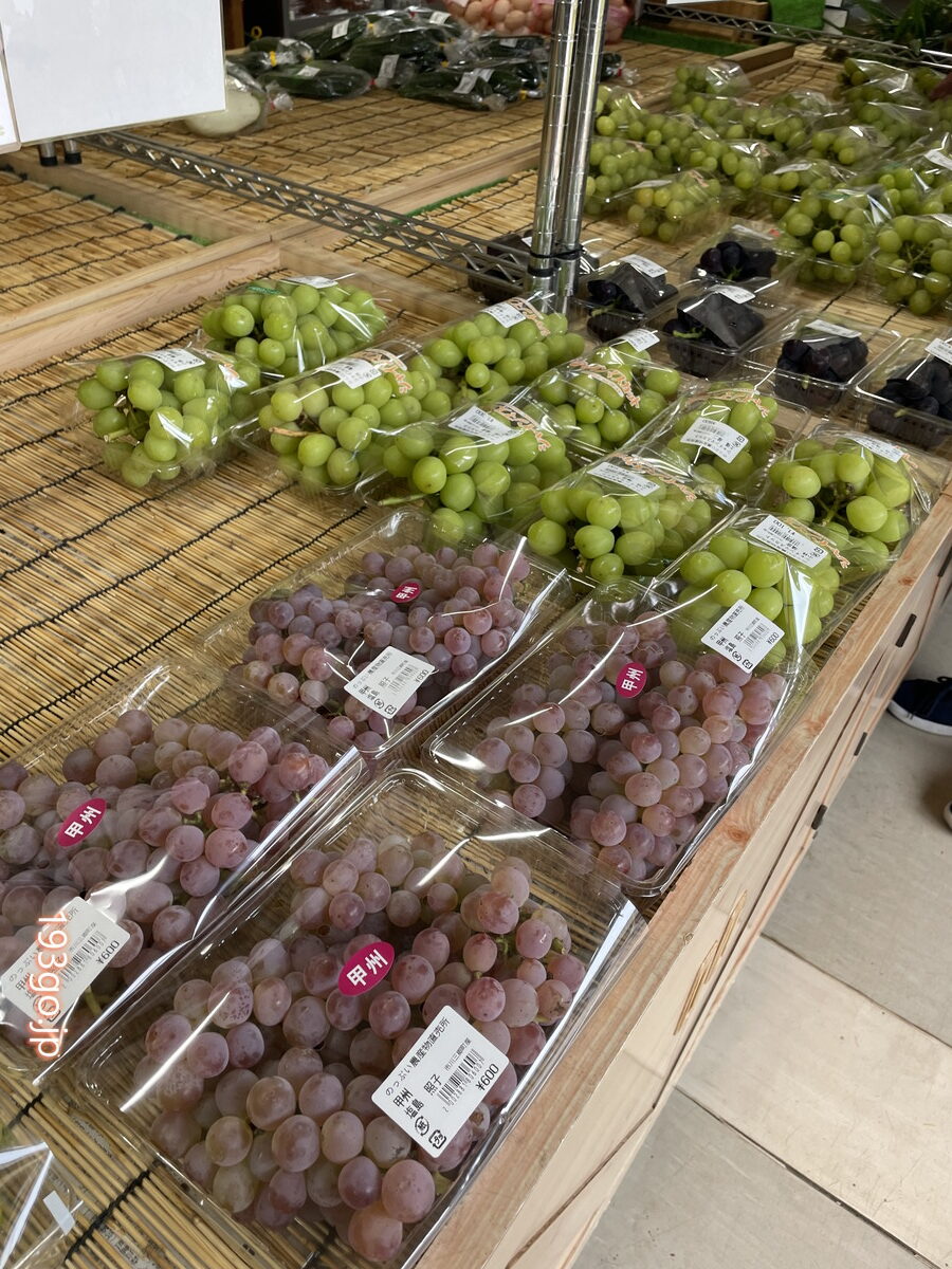 毎朝、近所の畑から届く野菜や果物などが売られてる。旬のぶどうを購入。