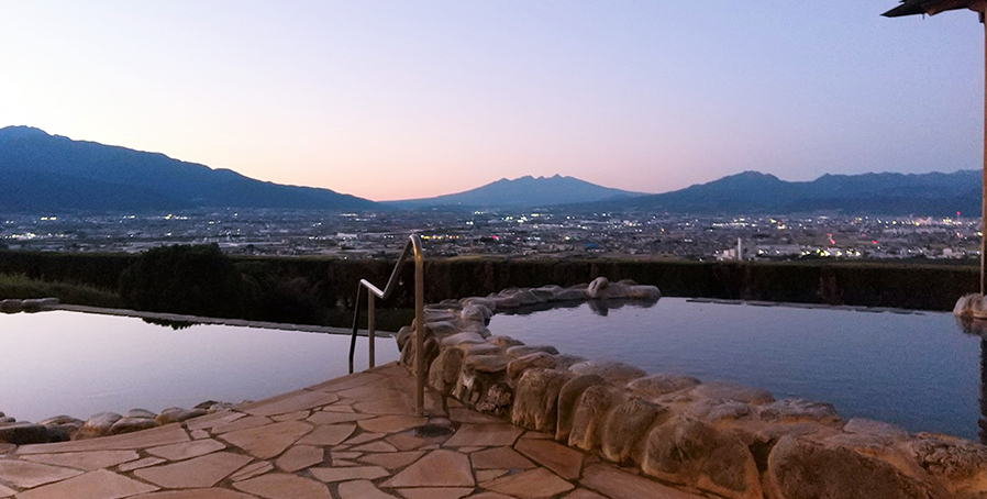 露天風呂からは、扇状地である甲府盆地の大パノラマ!