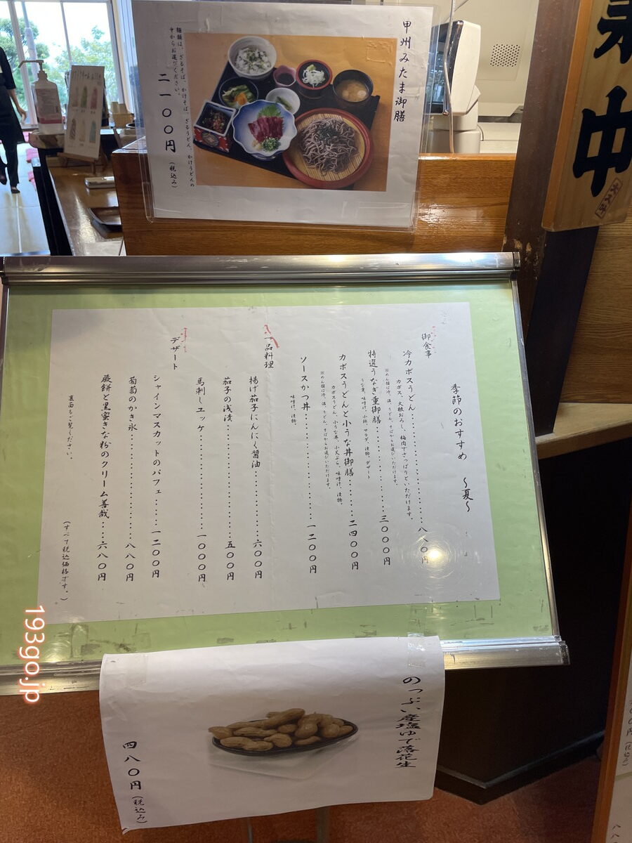 広々した駐車場、JA山梨みらい のっぷい農産物直売所(9:30~18:00)併設。