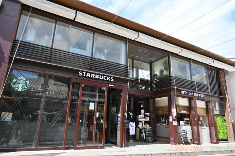 スタバの店舗は、厳島神社に通じる表参道商店街にある。