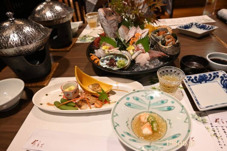 夕食は、ロビー階のダイニング「潮路」で瀬戸内海旬の幸の懐石料理。