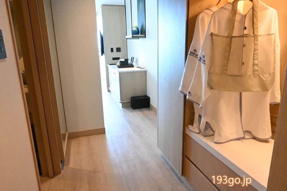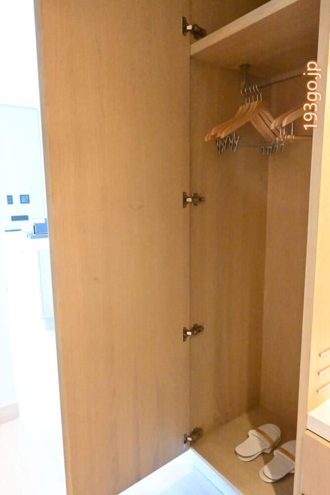 入口は幅があり広々。クローゼットと、スーツケースを広げられる荷物台。