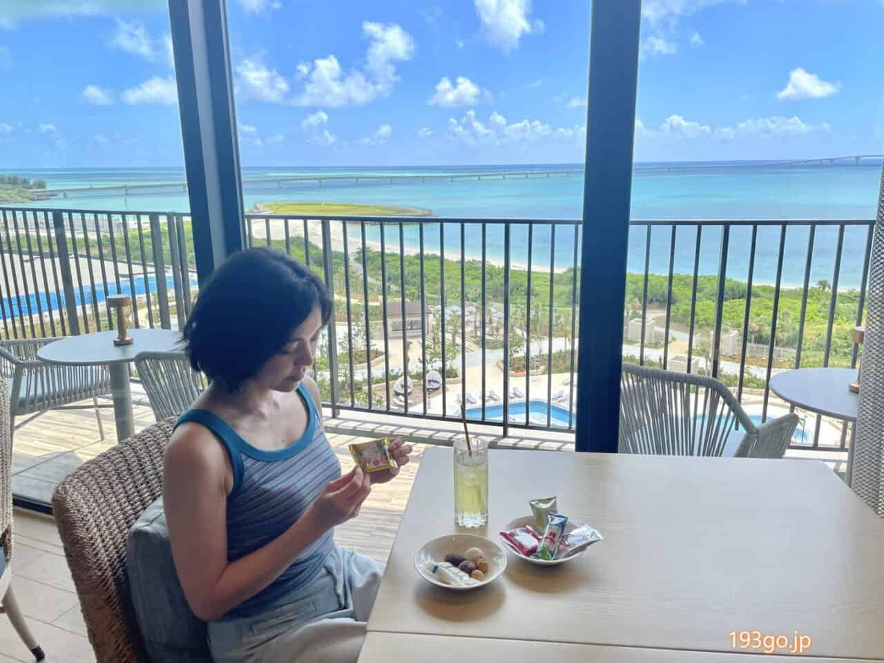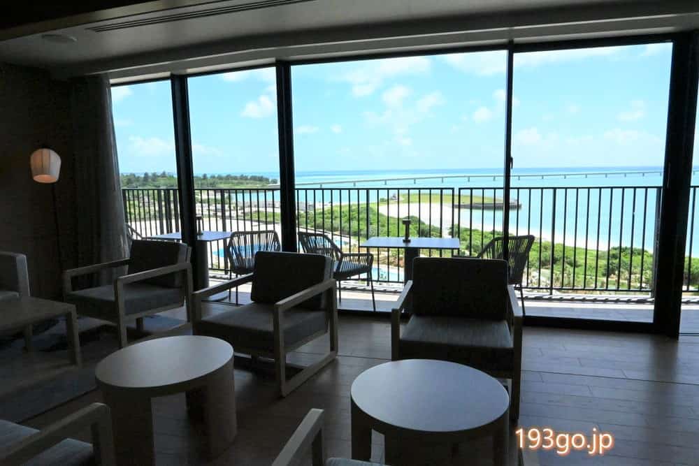 エグゼクティブラウンジの開放感がすごい!“宮古ブルー”と伊良部大橋一望