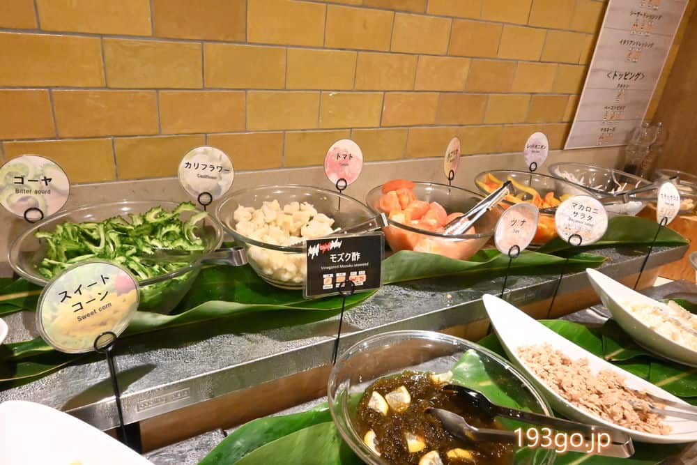 サラダにはゴーヤや海藻、モズクなどの海の物。