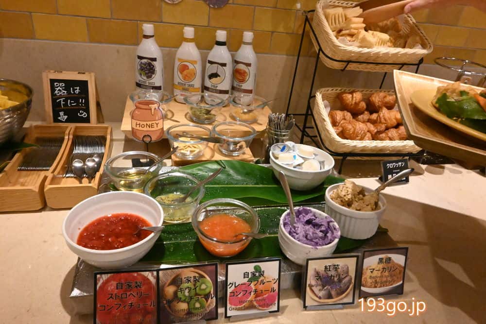 パン用のスプレッドは紫芋や黒糖マーガリン。