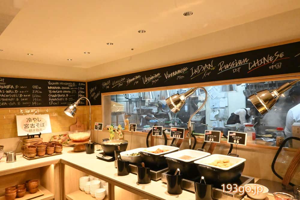 定番の和・洋食はもちろん、多国籍料理や地元食材をアレンジした料理が100種類以上並ぶ。