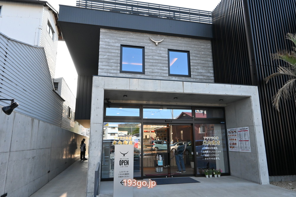 駐車場(15台)を併設した精肉店(肉の米内)の裏手にレストランが。