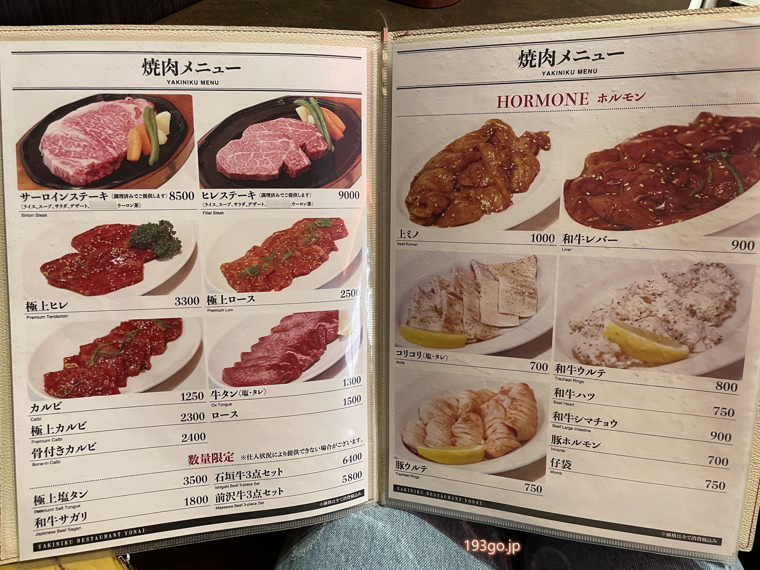 ホテルから車で5分ほどの「焼肉レストラン米内(ヨナイ)」へ。