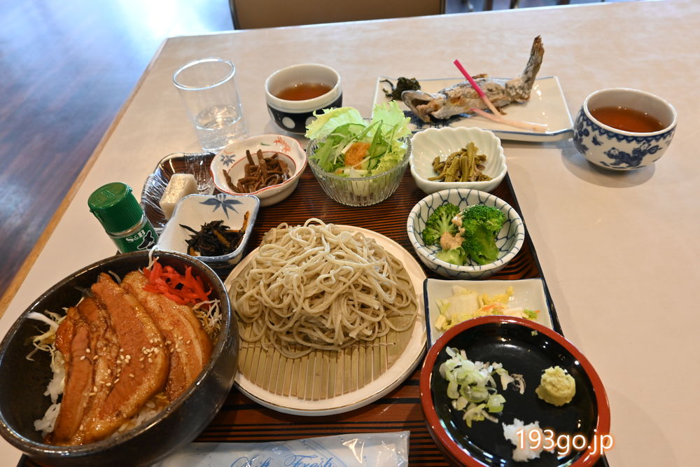 川魚塩焼きと打ちたてお蕎麦!信州ポークのヤツガネ丼も