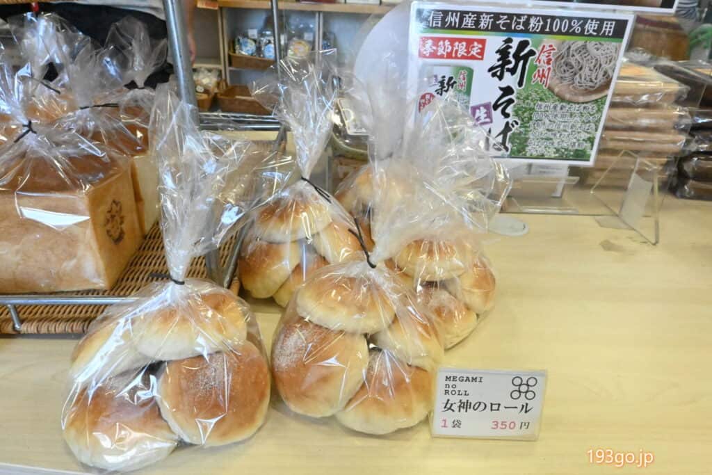 信州そばやクルミ、ワサビ、パン、お米、ジャムやジュースなど。大きな豚まんも気になる。