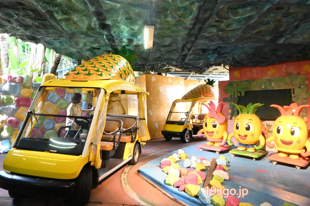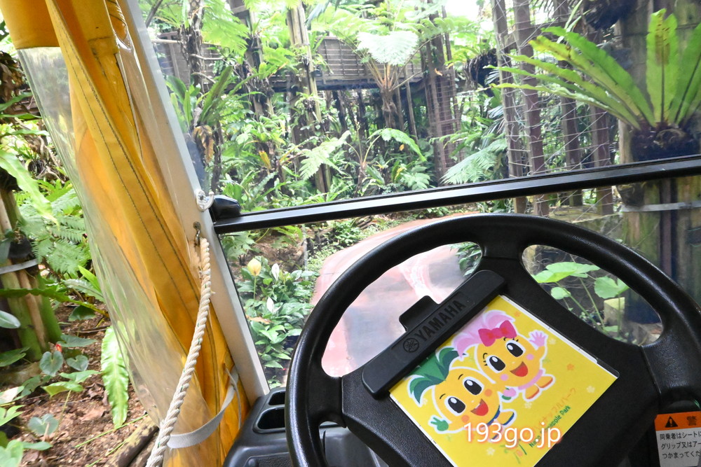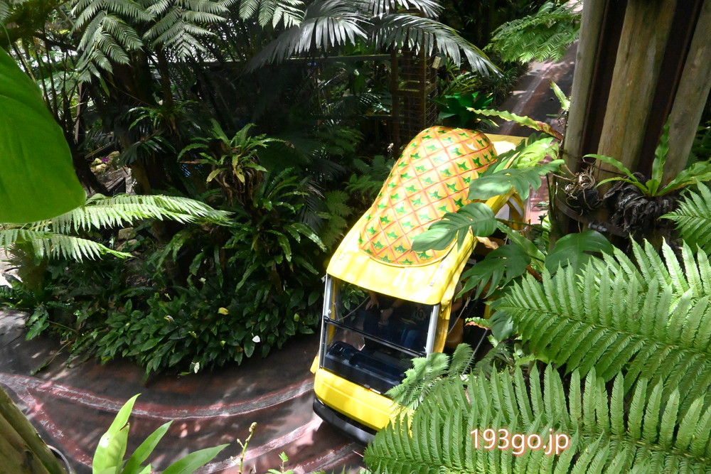 トレインから降りると、パイナップルデザインのゴーカート(パイナップル号)に乗ったり、歩いて熱帯雨林のジャングルの中を探検。