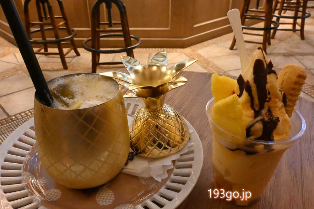 生搾りパイナップルジュース:800円と、パイナップルまーさんでー:520円を注文