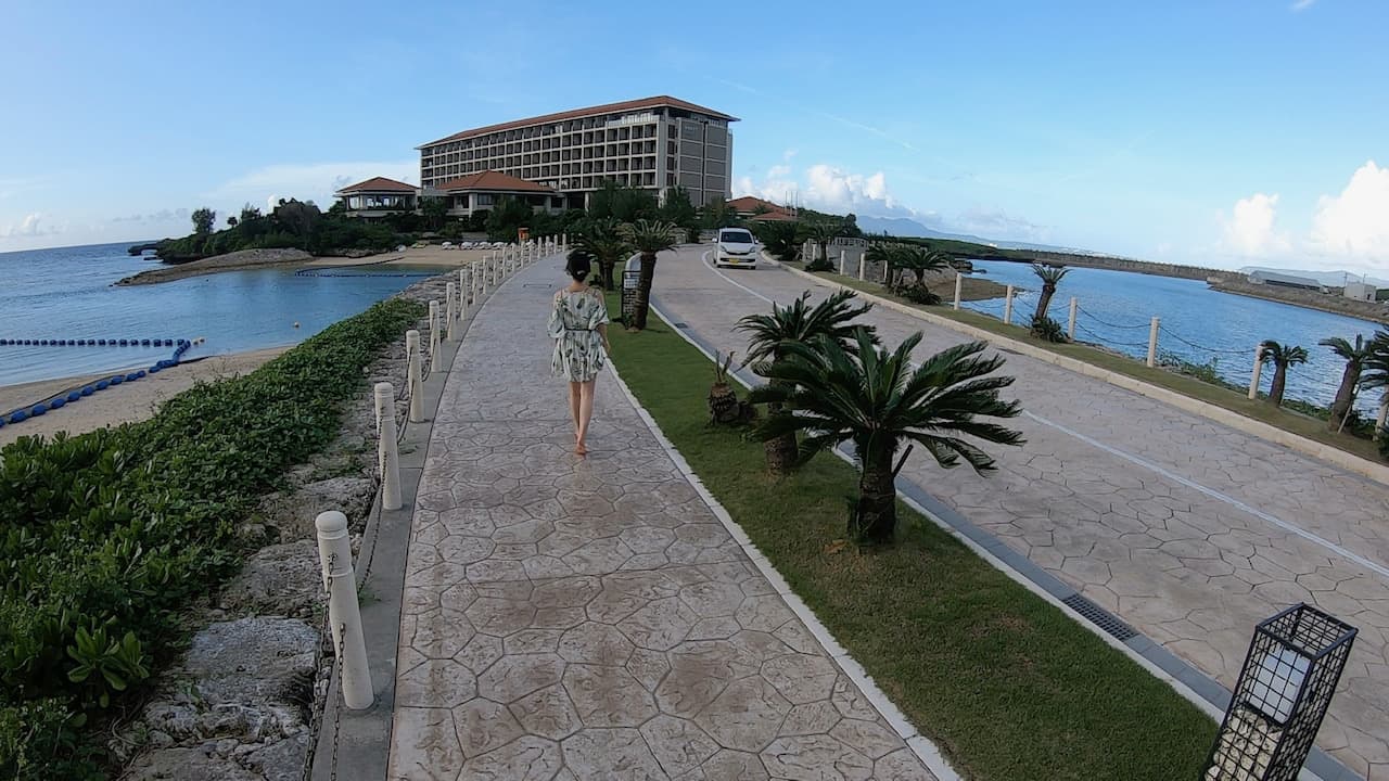 那覇市が沖縄南部なのに対し、「ハイアット リージェンシー 瀬良垣アイランド 沖縄」がある恩納村は中北部のため、レンタカーを借りるなど車で移動もしくは、空港リムジンバス、公共機関利用の場合は空港からバスの利用が便利。