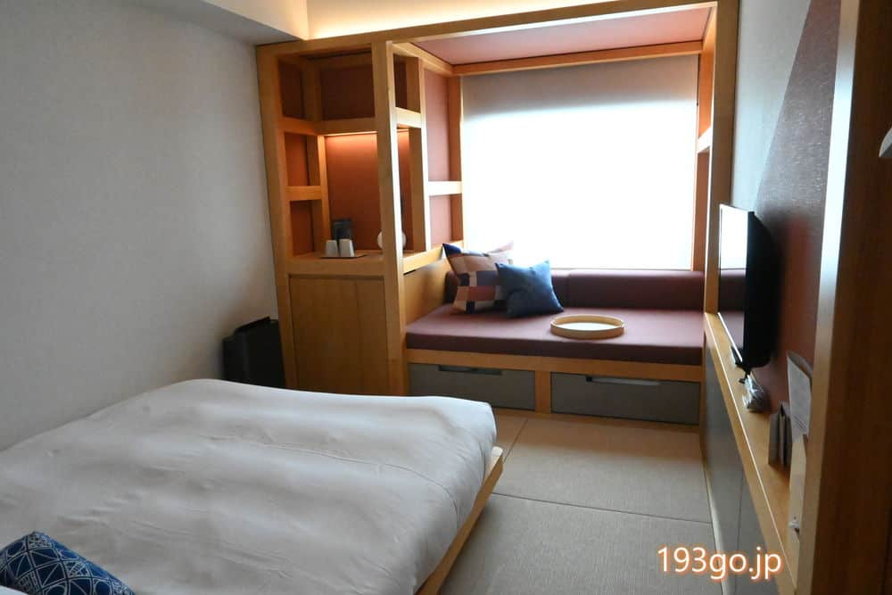お部屋へ!ローベッドと広いソファー コンパクトなリラックス空間 アメニティもチェック(部屋に何がある?)