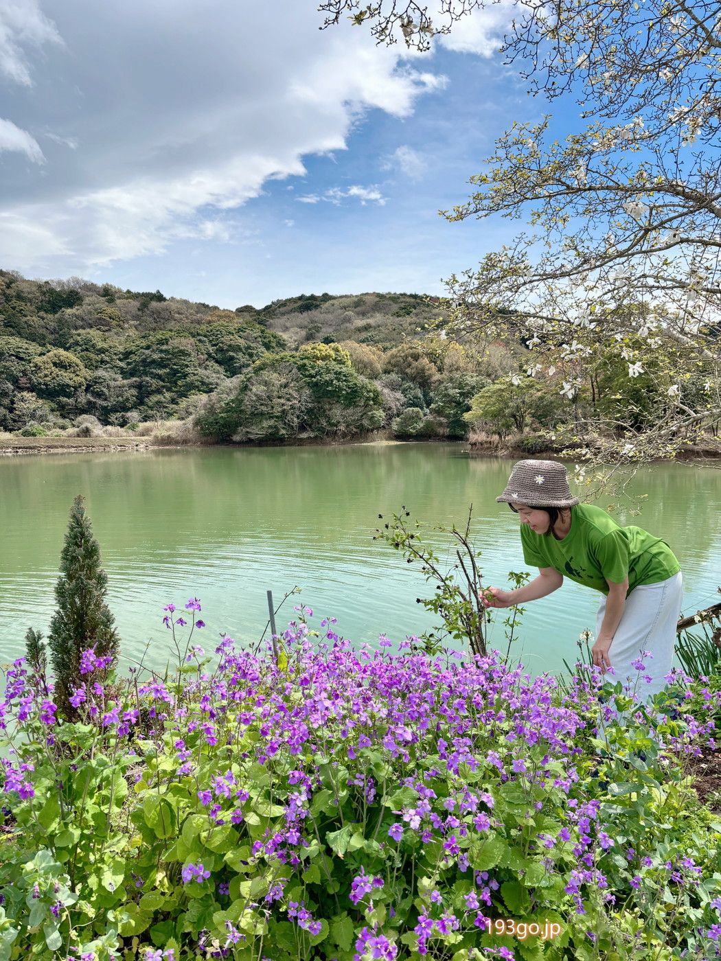 お店の向かいは、池とお花畑が広がり絵本のような風景。