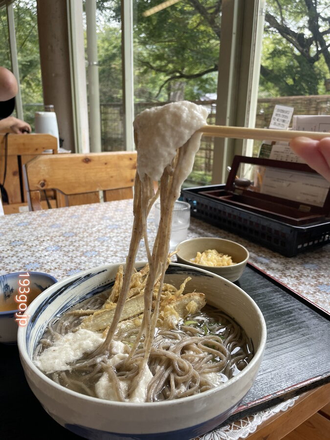 ねっとり、もちっとした弾力のとろろ、香ばしいゴボウ天が浸ったお出汁。