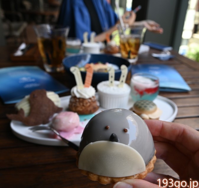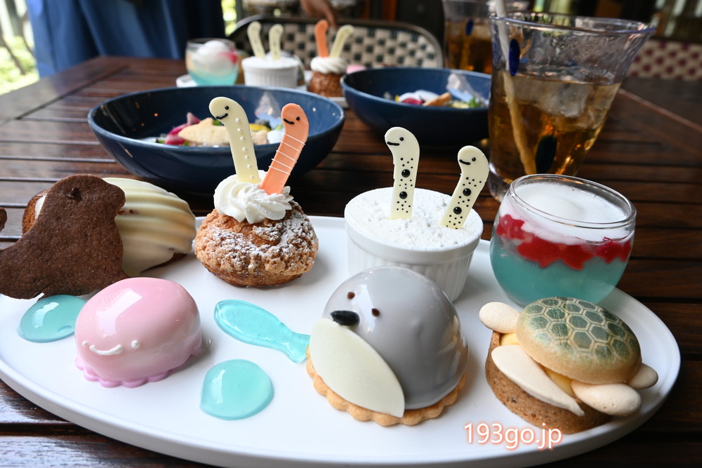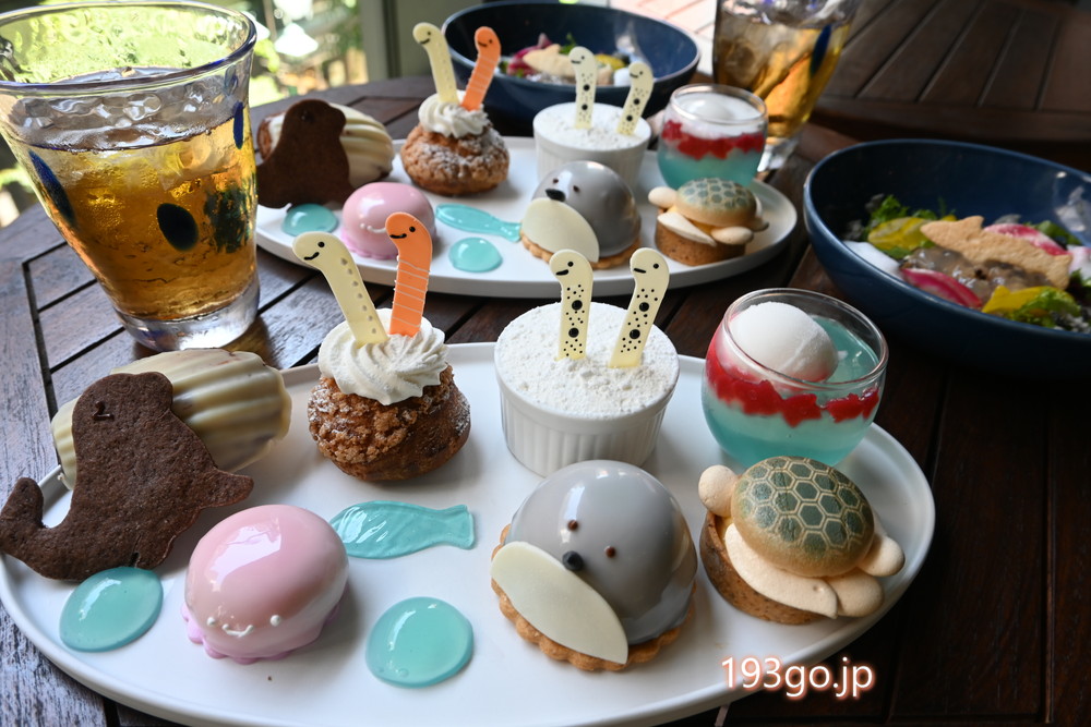 貝殻マドレーヌにオットセイクッキー、ぷっくりしたクラゲのゼリームースや赤ちゃんペンギンムースに、ウミガメタルト。