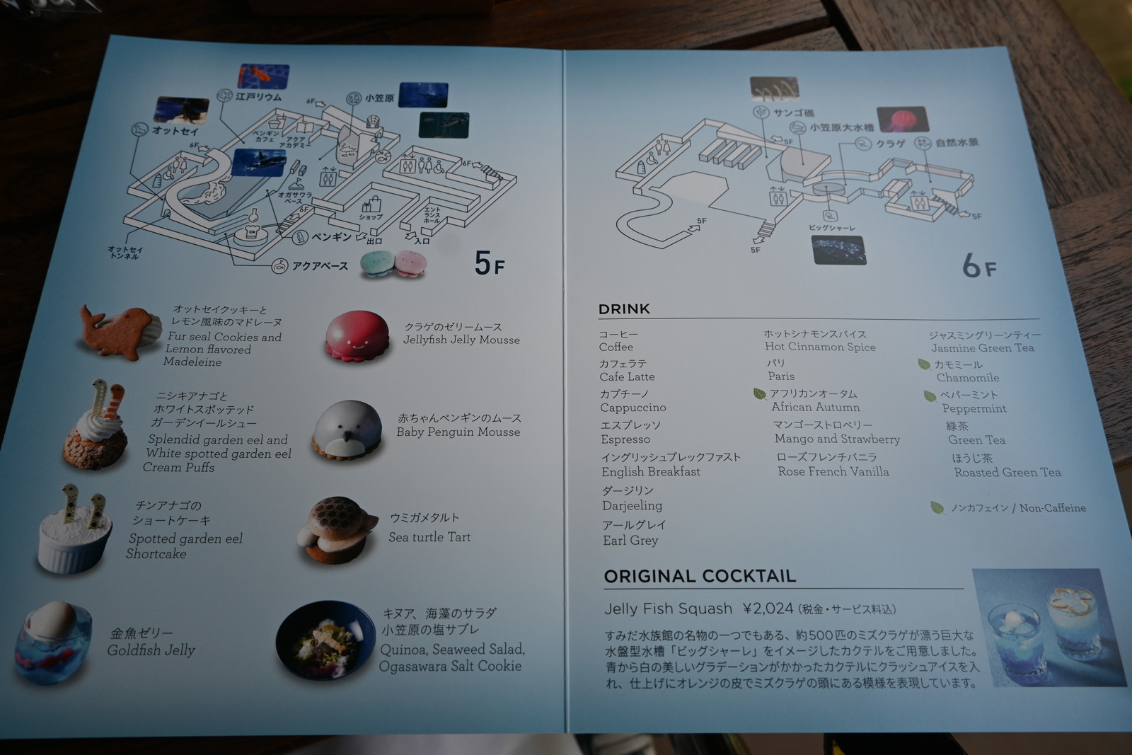 すみだ水族館のマップ付きパンフレット(メニュー)で、スイーツのモデルとなった生き物が何処で見られるのかも確認できる。ぜひ会いに行きたい!