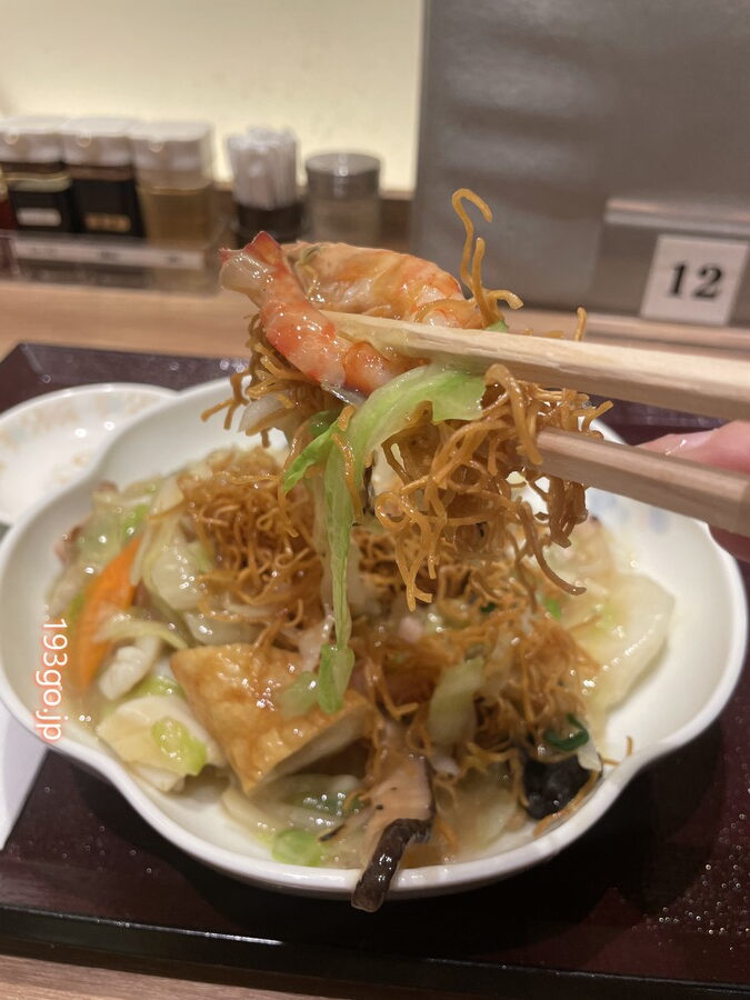 長崎市内では、長崎駅構内の長崎街道かもめ市場にある「蘇州琳」で皿うどん。