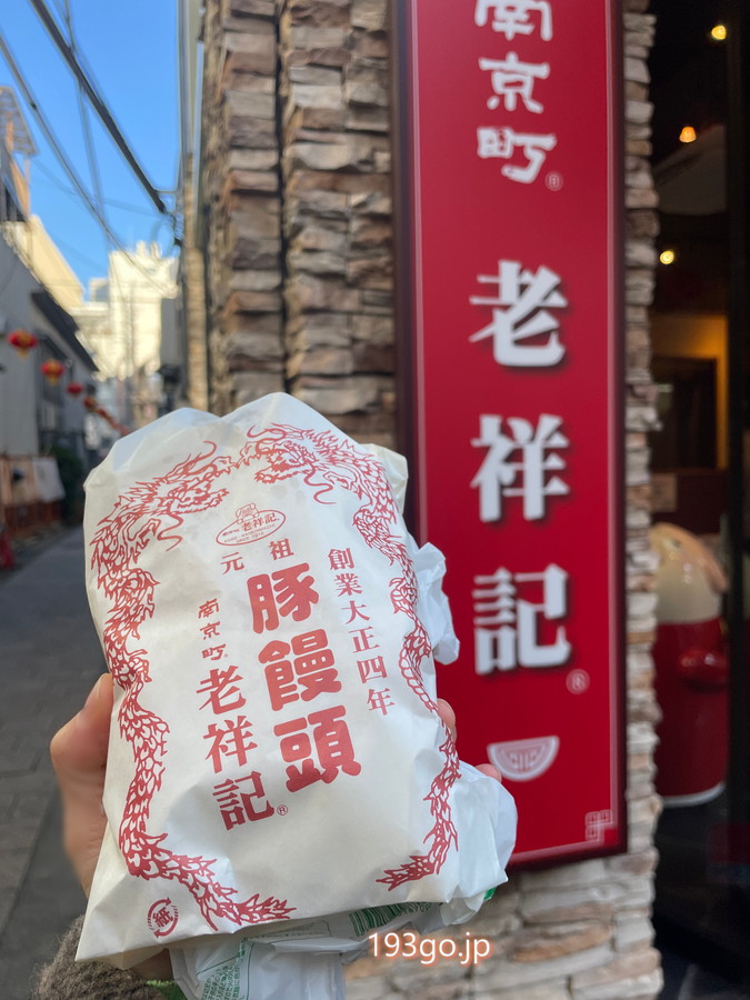 食後に中華街の方をぶらつき「老祥記」の豚饅頭をゲット。