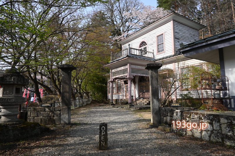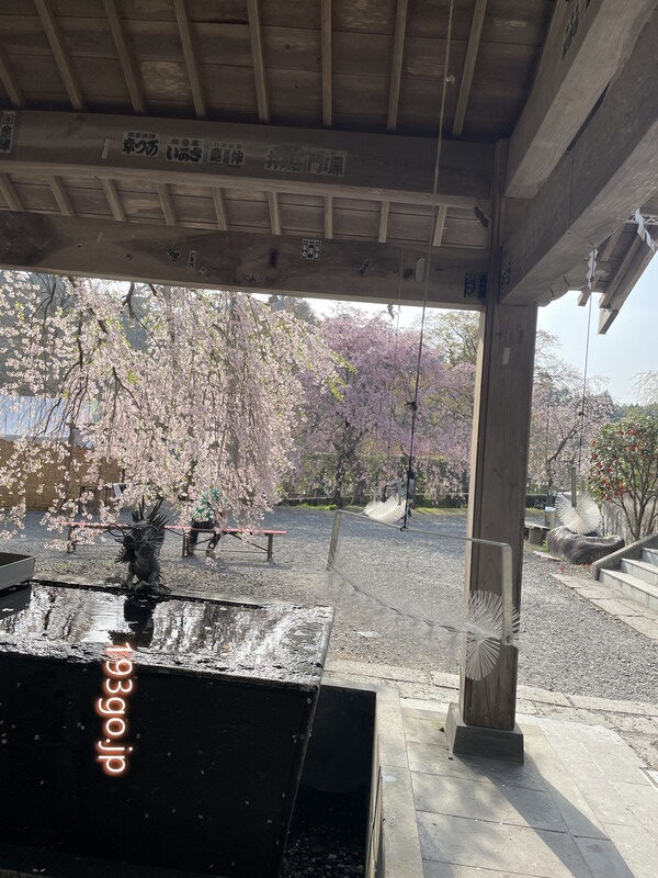 境内に植えられた樹齢推定200年のベニシダレザクラ「楽翁桜(らくおうざくら)」も名物。