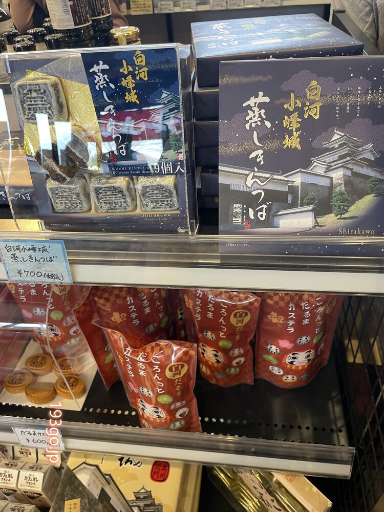 売店では、白河だるまバーガー、しらかわんグッズ、白河小峰城の蒸しきんつばなどのご当地グルメ&お土産が販売。また、この辺りでは白河ラーメンが楽しめるよう。