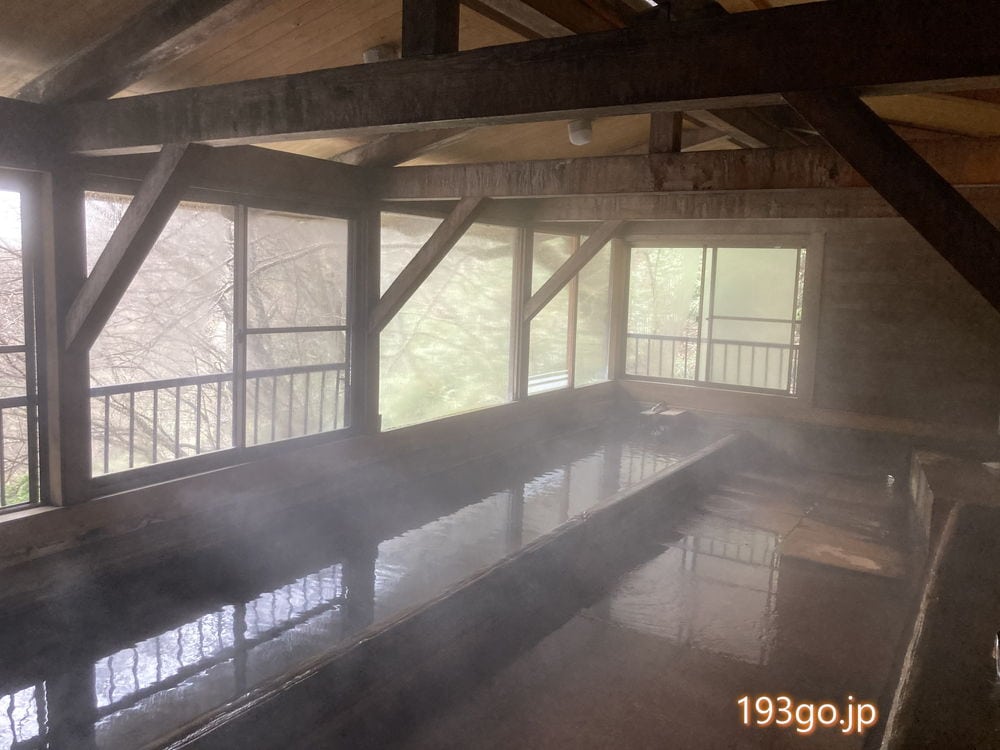 お湯の上の方は熱めだけど、全体的にぬるく、黄土色に濁った湯。