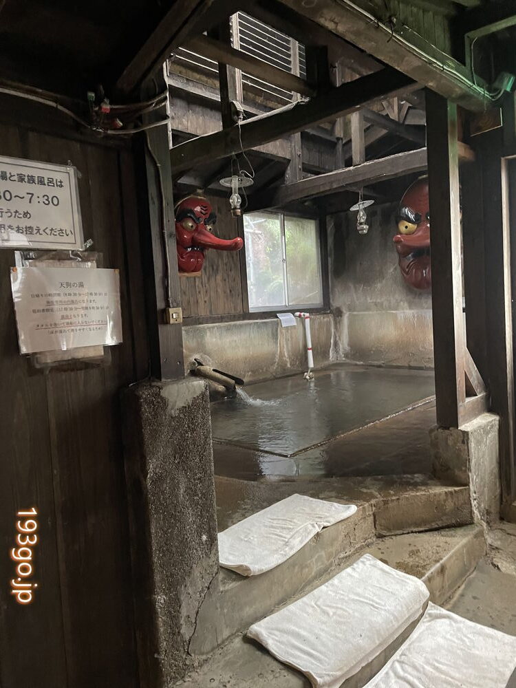 ちなみに、男湯は「天狗の湯」で浴槽の頭上に巨大な天狗の顔面が二体。すごいお風呂だね。