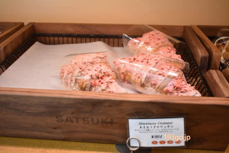 更にパン棚には、人気のスイーツクロワッサンに限定商品のあまおうクロワッサン:864円が登場している。