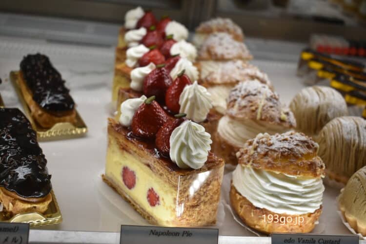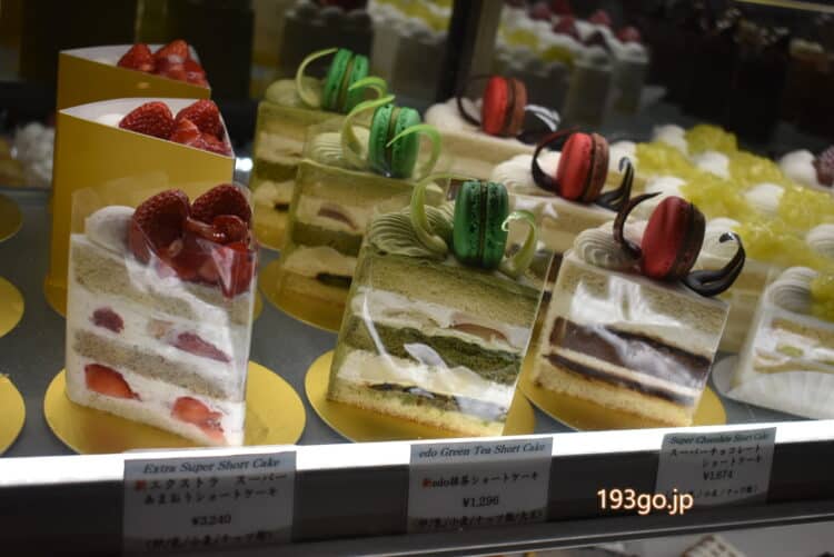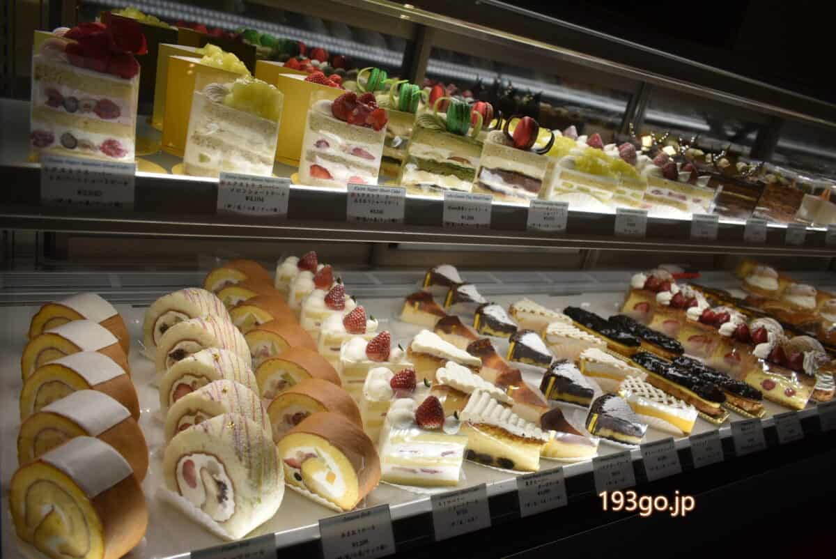 店内のショーケースに並ぶケーキの数々