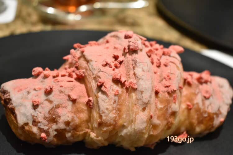 砂糖のシロップと博多あまおうのフリーズドライをまとったコロッとボリューム感のあるクロワッサン