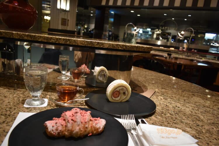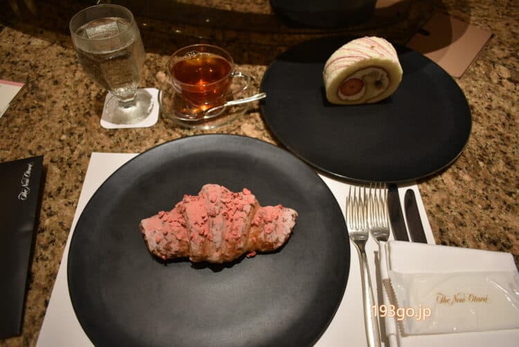 パン、ケーキは1つずつ黒いプレートに盛り付けられてきた。