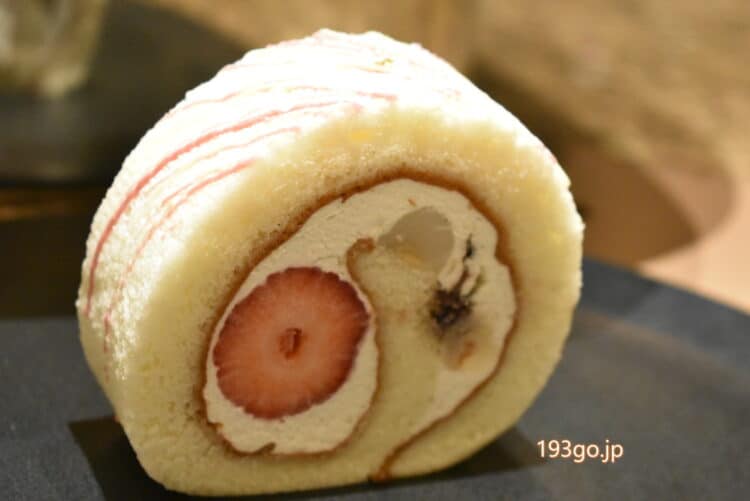 純白の生地に大粒あまおう!白玉&黒蜜あんこも「新あまおうロール」