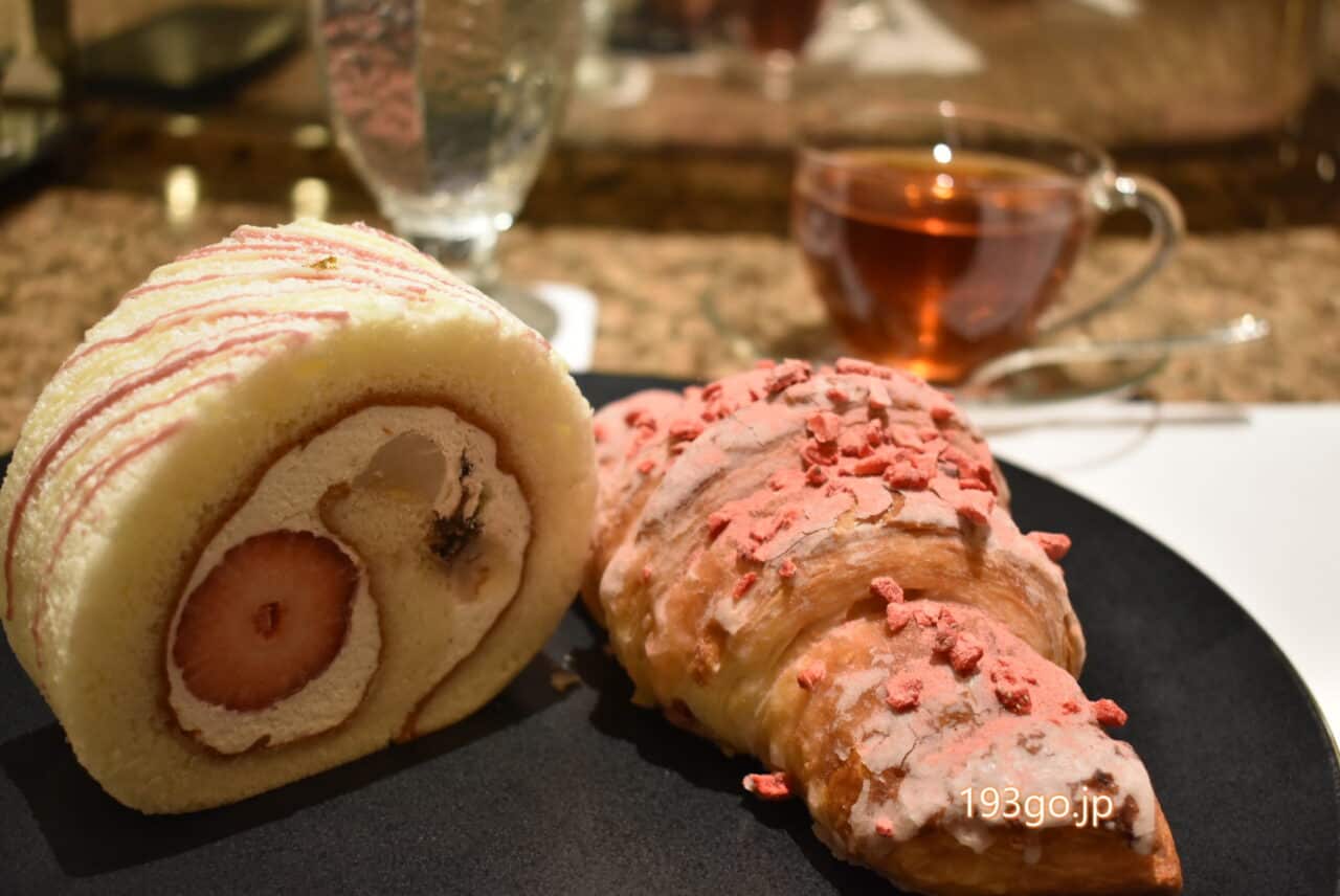 店内で新あまおうロールとあまおうクロワッサンを。