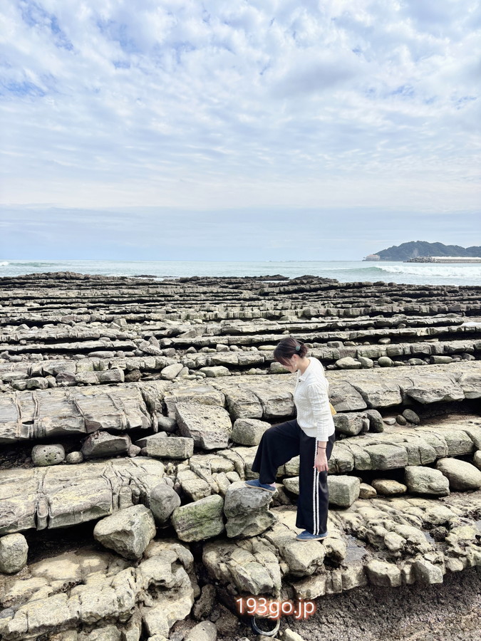 干潮時だったので、幾何学的な岩肌を間近で見ることができた。