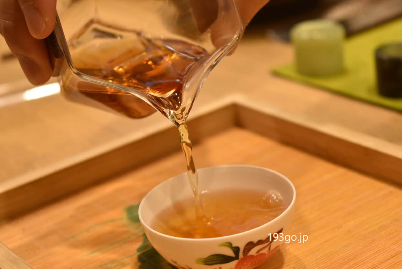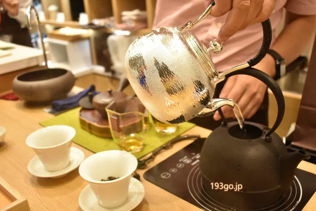 店内で好きな中国茶を1種類選び、一煎目をスタッフが淹れる。