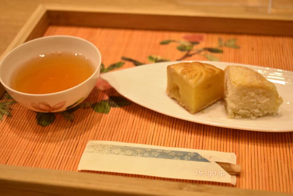 華やかな香りと優しい甘みでほっこり。カップに3回ほど楽しめた。ちょっと珍しい中国のお茶菓子と!自宅にも、本格的な茶器が欲しくなってくる…。