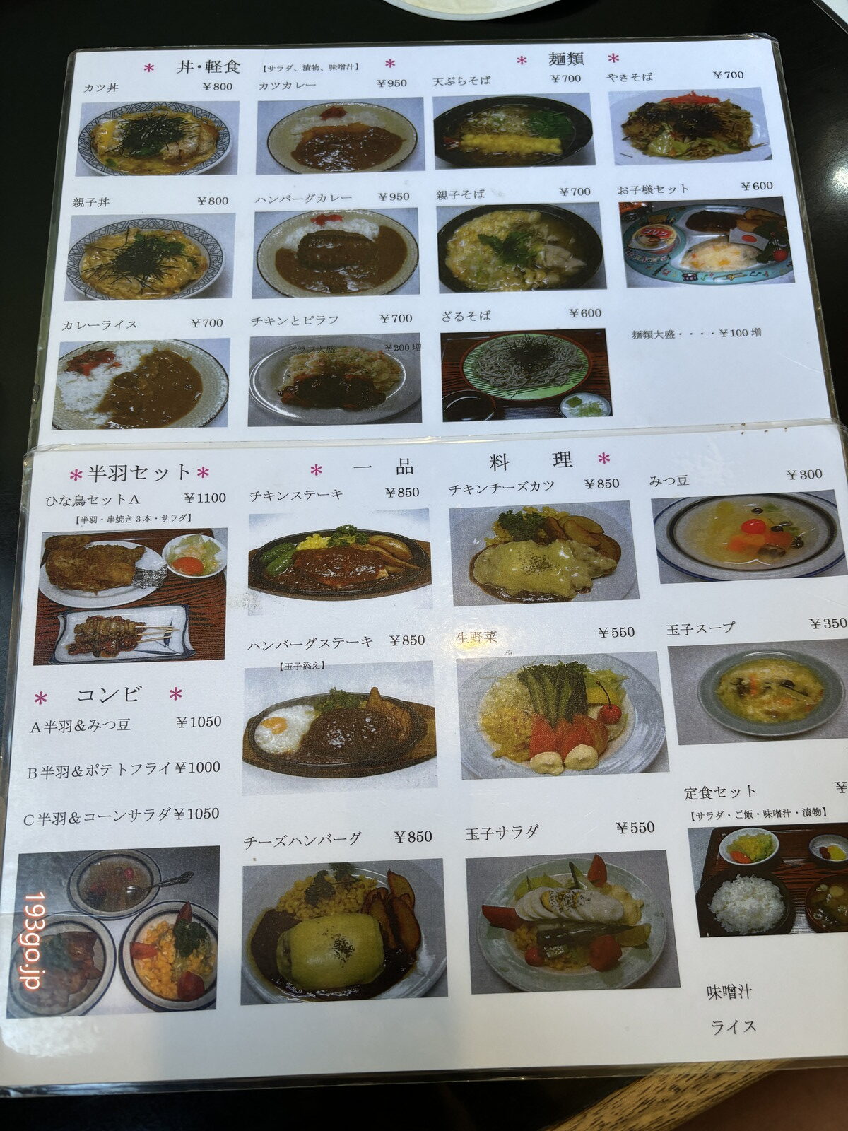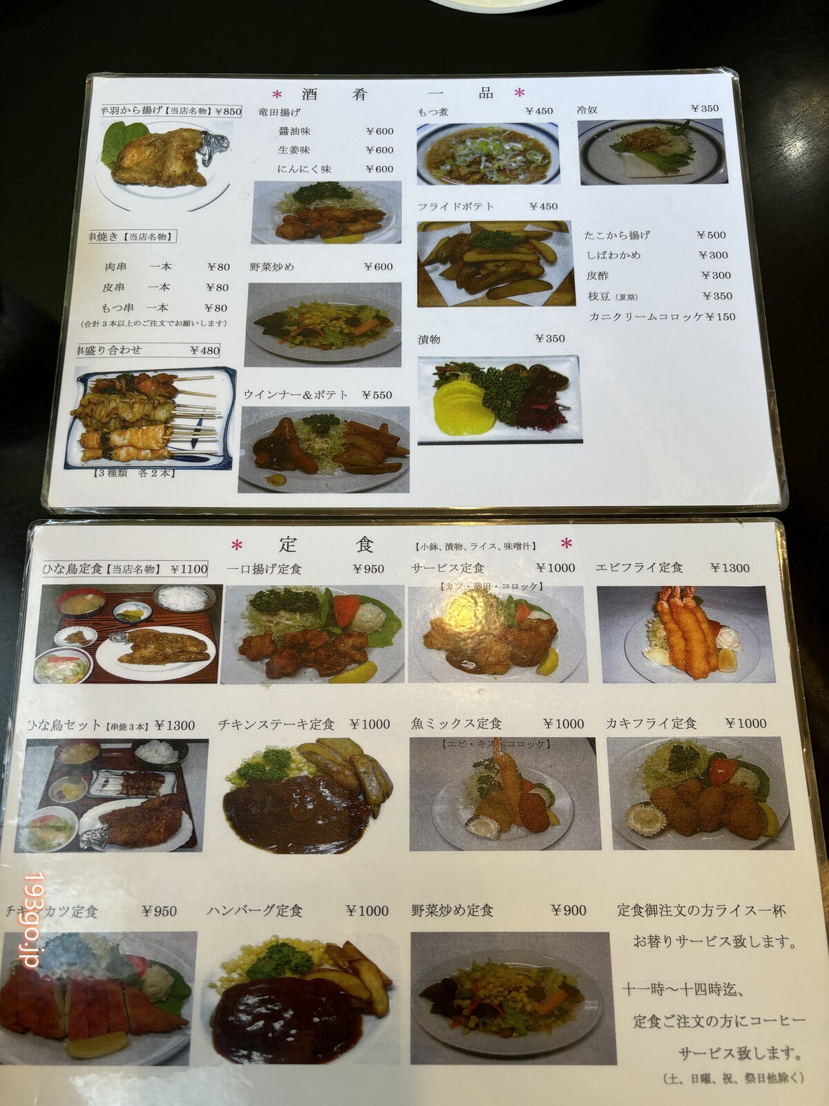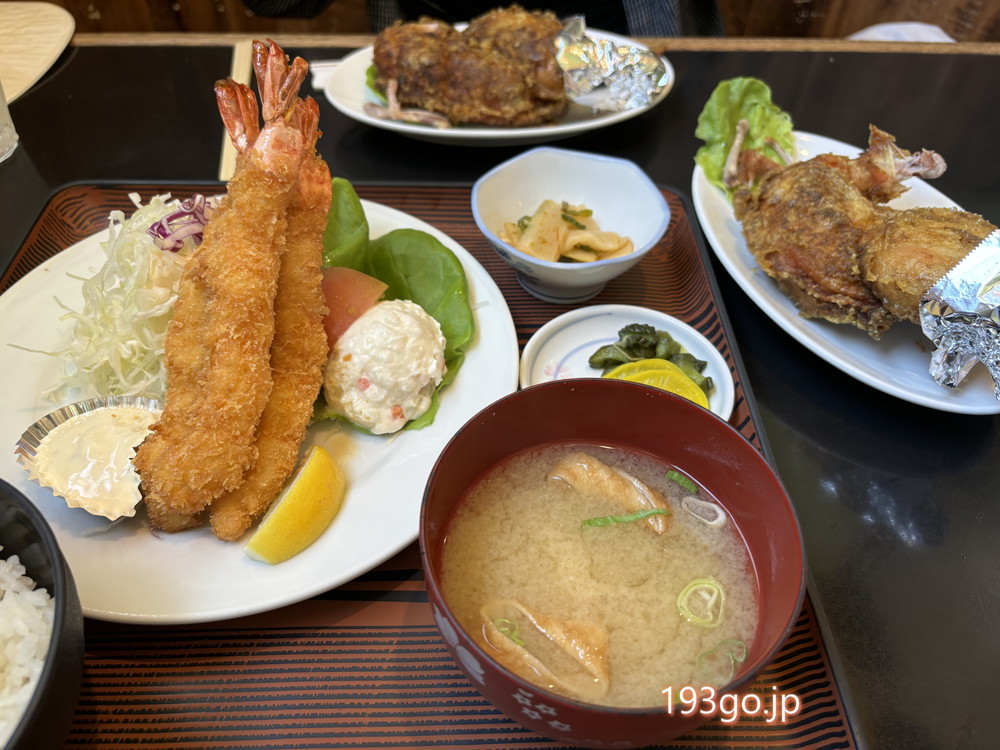 名物の半羽唐揚げ以外にも、唐揚げ、エビフライ、カキフライ、ハンバーグなどの充実した定食メニューが揃う。
