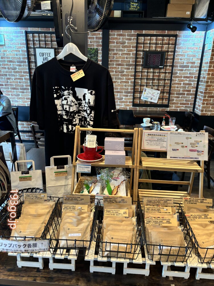 ドリップバッグコーヒーやTシャツ、タンブラーなどのオリジナルグッズの販売。