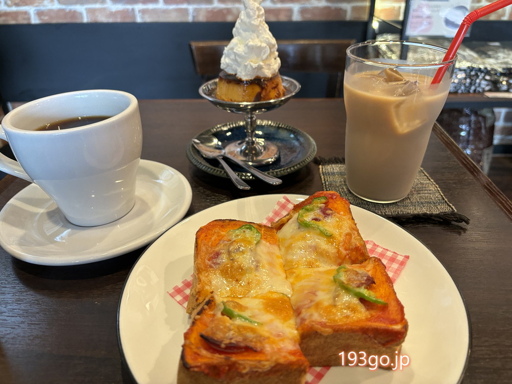 トーストやサンドイッチなどの軽食と、スイーツはプリン、ベイクドチーズケーキ、スパイスバナバブレッド他。
