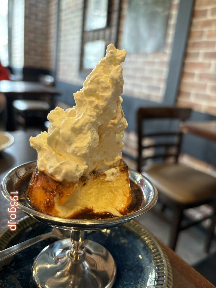 SNSでも見かける、名物となっているクラシックプリンは生クリームをトッピングすると、